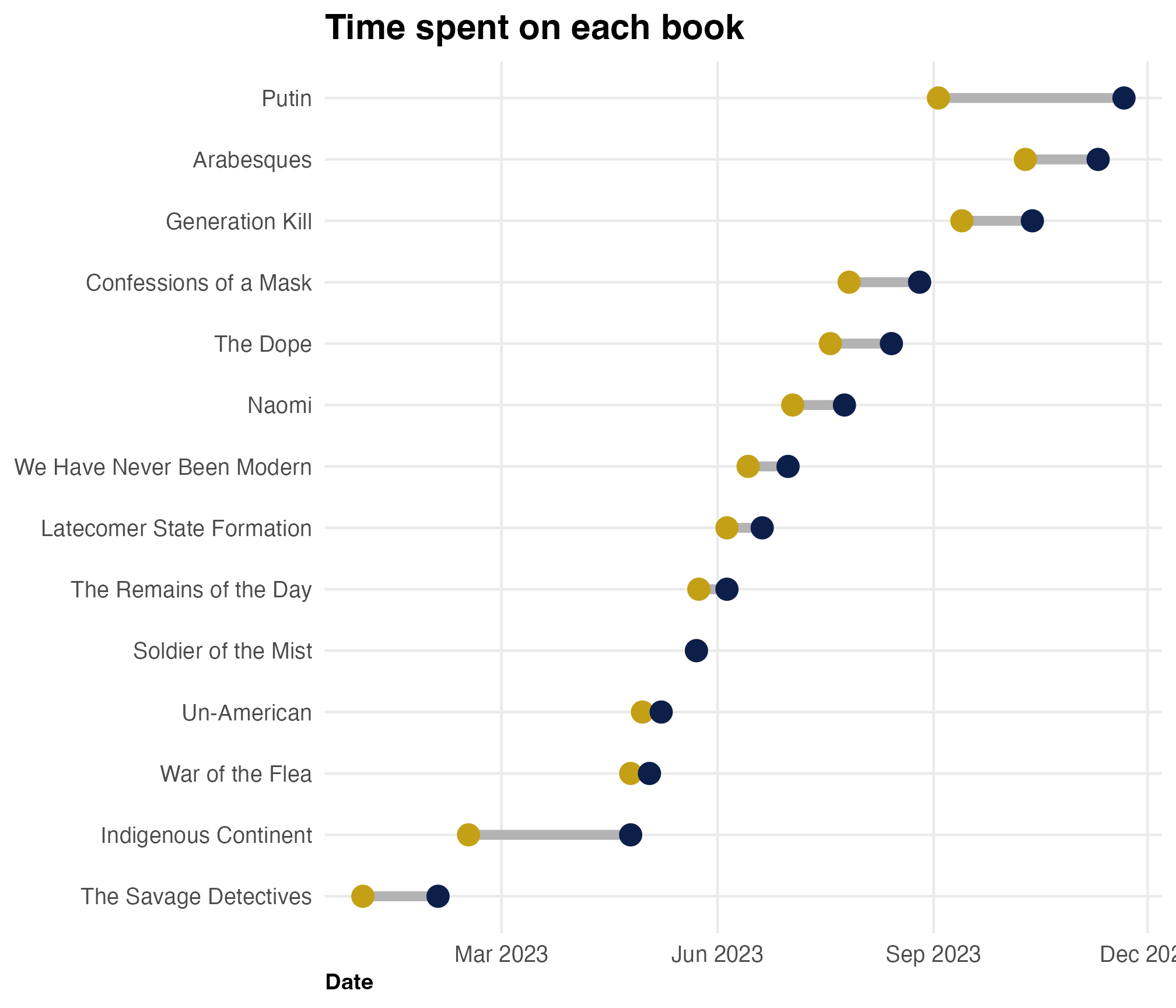 How long am I spending on each book? Caveat: the dates added / read are approximations in some cases.